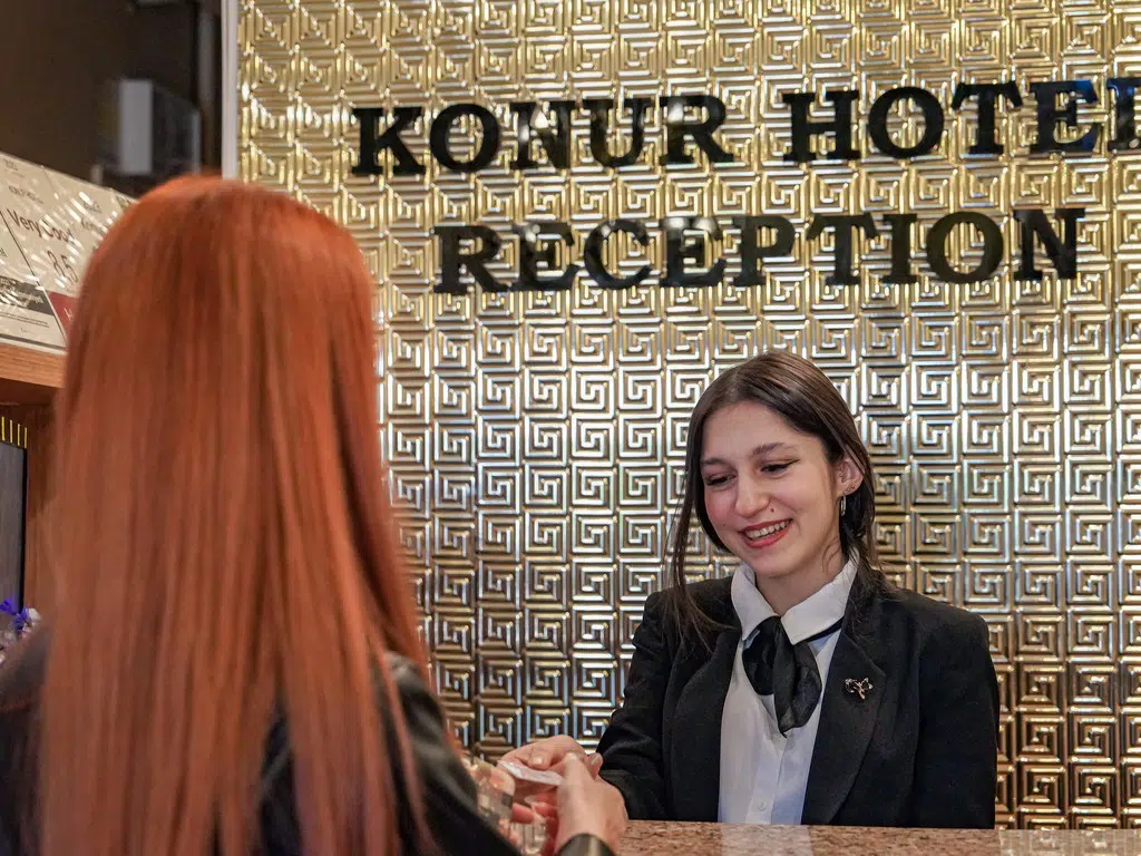 Misafir memnuniyetini ön planda tutan hizmet anlayışımızla resepsiyon ekibimiz günün her saati hizmetinizdedir. Giriş, çıkış ve ihtiyaç duyabileceğiniz tüm konularda 24 saat boyunca destek alabilirsiniz.